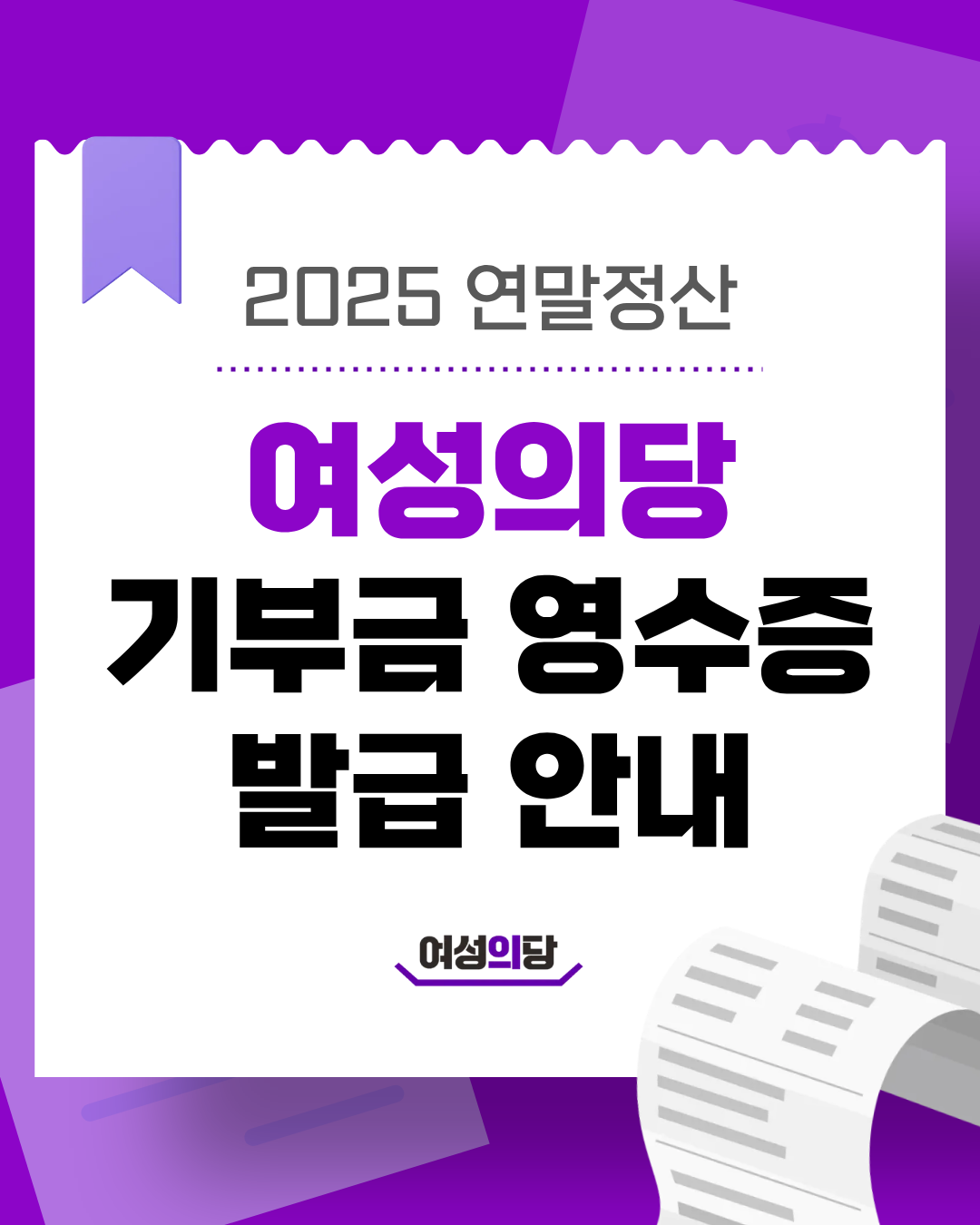 ![]() [2025년 기부금 영수증 발급 안내] 올 한 해 여성의당에 보내주신 관심과 지지에 감사드리며, 2025년도 기부금 영수증 발급 절차를 안내드립니다. 당해연도에 납부하신 당비·후원금에 대한 기부금 영수증은 2026년 1월 중순 이후부터 국세청 홈택스에서 조회하실 수 있습니다. 1. 발급대상: 2025년도 당비 또는 후원금 납부자 2. 신청마감: 2025년 12월 31일 3. 신청방법 1) 일반당비: 당원이 CMS(계좌이체, 신용카드, 휴대폰)로 정기 납부한 당비 2) 특별당비: 당원이 중앙당(예금주: 여성의당) 계좌로 직접 이체한 당비 3) 후원금: 당원 및 후원자가 중앙당 후원회(예금주: 여성의당 중앙당 후원회) 계좌로 직접 이체한 후원금 4. 유의사항 여성의당의 든든한 지지자가 되어주세요! 조세특례제한법 제76조에 따라 연말정산 시 연간 최대 10만원까지 전액 세액공제가 가능하며, 10만원 초과분에 대해서는 최대 25%의 세액공제를 받으실 수 있습니다. |