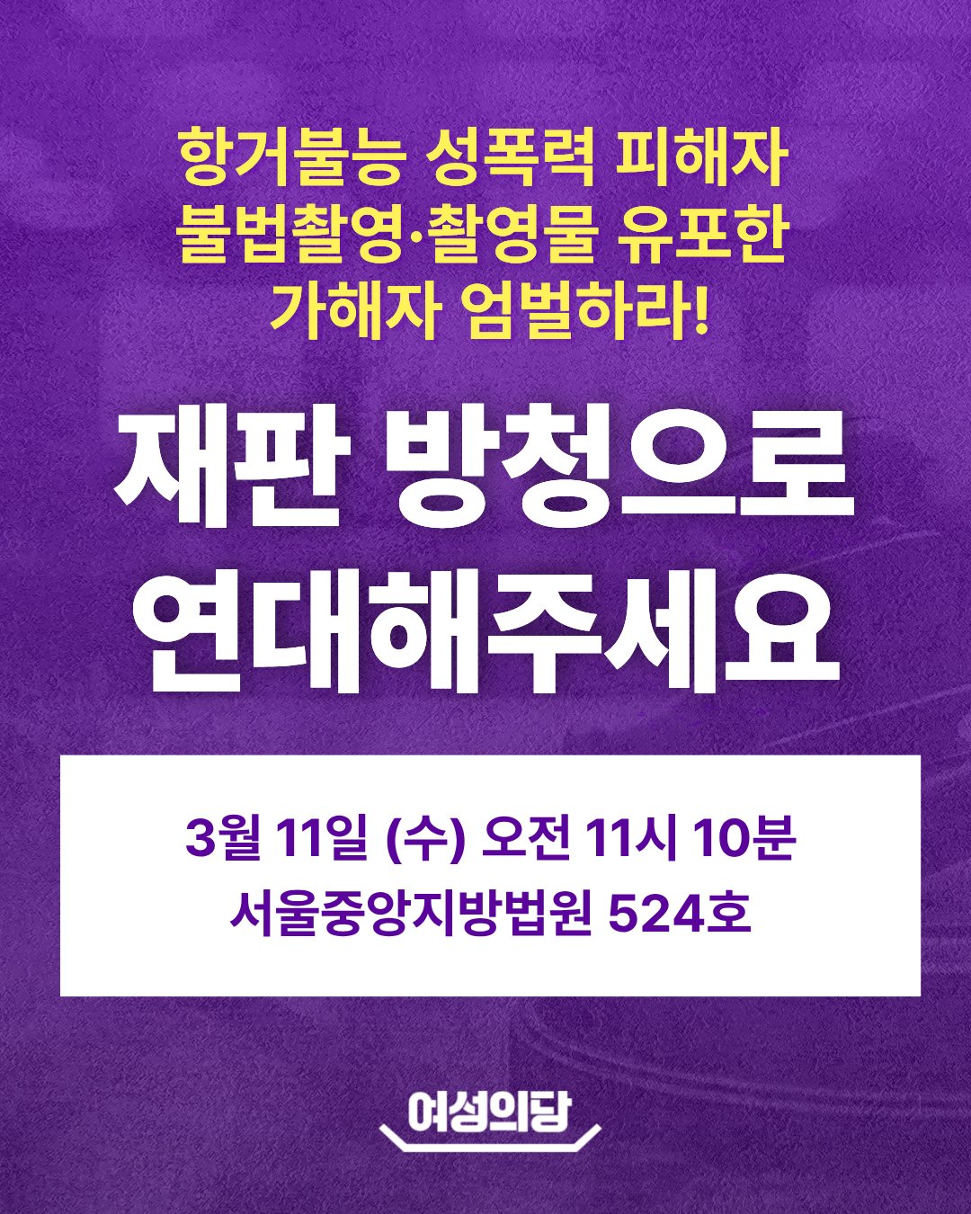 | [재판 방청 모집] 440건의 불법촬영물이 더 이상 유포되지 않을 수 있도록, 재판 방청으로 피해자에게 연대해주세요. | |