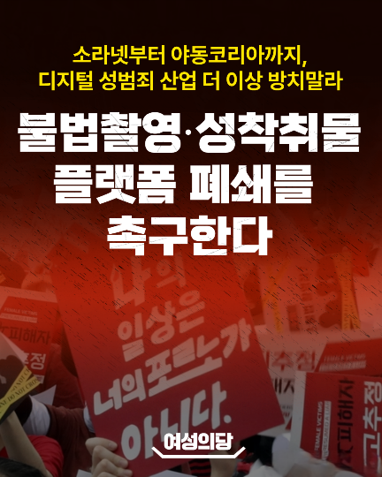 소라넷부터 야동코리아까지, 디지털 성범죄 산업 더이상 방치말라! 불법촬영·성착취물 플랫폼 폐쇄를 촉구한다 | |