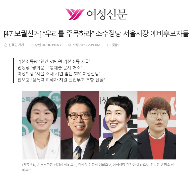 [여성신문] [4·7 보궐선거] “우리를 주목하라” 소수정당 서울시장 예비후보자들