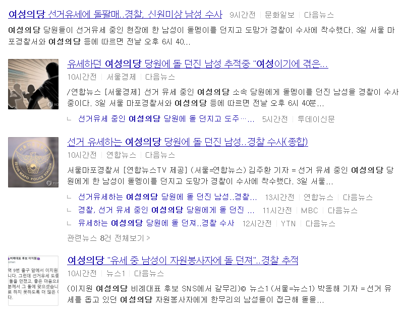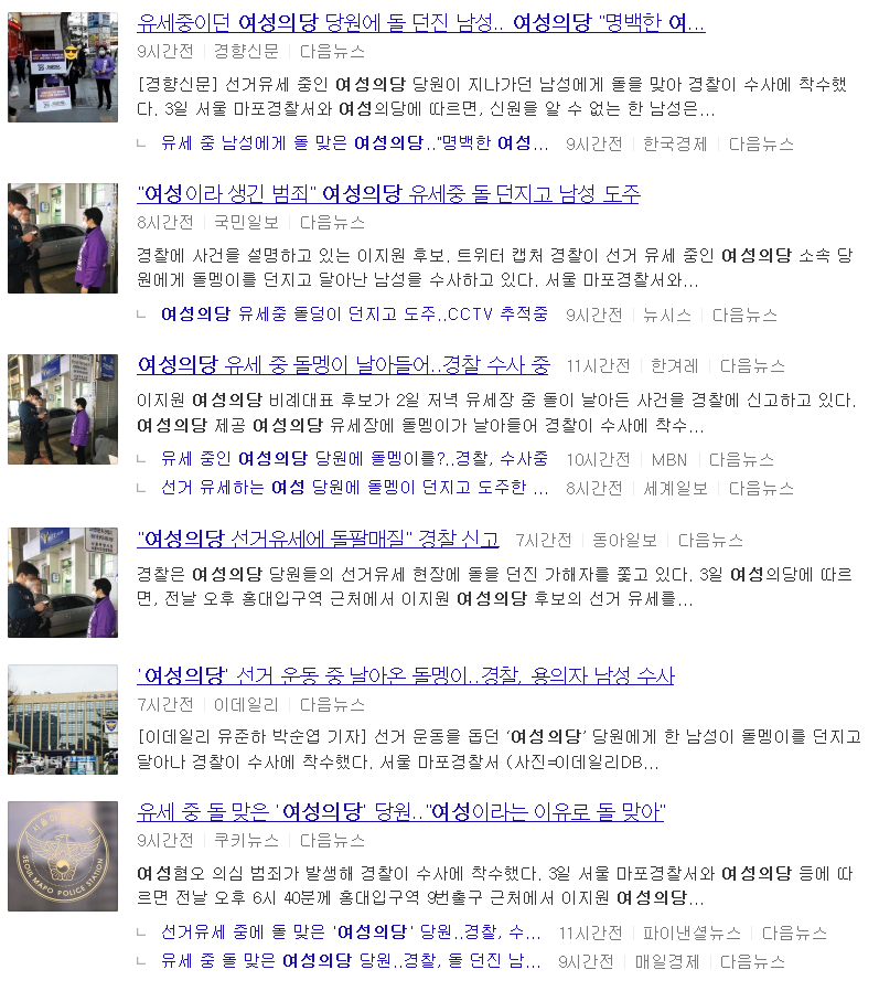 홍대입구 선거유세 여성혐오 테러 사건 관련 보도 현황