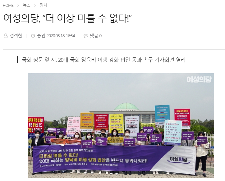 [경기매일] 여성의당, “더 이상 미룰 수 없다!”