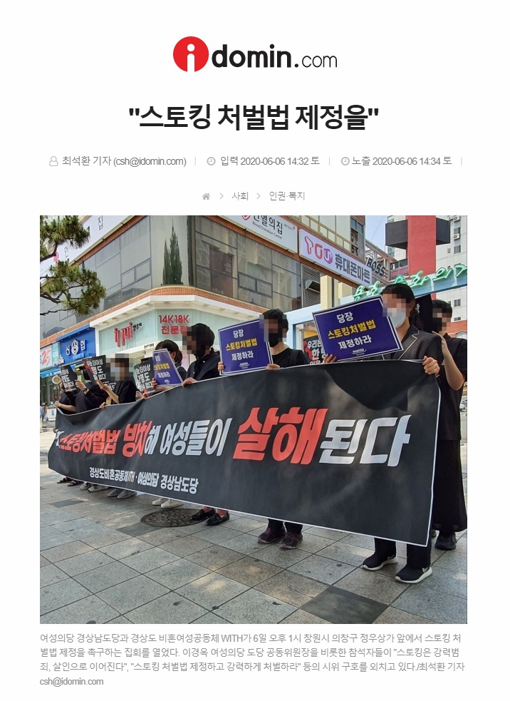 | [보도모음] 여성의당 경상남도당 스토킹처벌법 제정 촉구 집회 | |