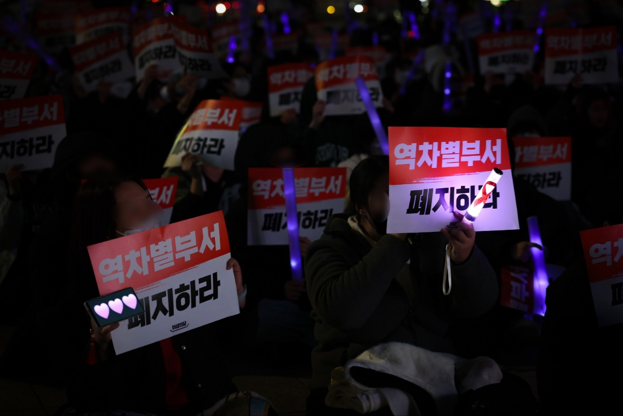 ![]() ![]() ![]() ![]() ![]() ![]() ![]() ![]() 여성의당은 여성폭력추방주간을 맞아 보신각에서 ‘성평등가족부 역차별 부서 폐지 촉구’ 시위를 열고, 수백 명의 시민과 함께 여성의 목소리를 외면해 온 정부에 분명한 경고를 보냈습니다. 남성 역차별 부서 신설을 비롯한 이재명 정부의 여성혐오적 행보는 응원봉을 들고 광장으로 나섰던 여성들을 보란듯이 배반했습니다. 그러나 여성들은 주저앉지 않고 다시 한번, 자기 자신과 다른 여성들을 구하기 위해 거리로 나섰습니다. 오히려 어느 때보다도 힘차게 구호를 외치며, 역차별 부서 폐지와 여성폭력 추방을 촉구했습니다. 자랑스럽게 성평등을 내걸던 이재명 정부가 제시한 평등의 청사진은 칠흑같이 어둡기만 합니다. 그러나 정부가 집요하게 여성을 지워나가려 할수록, 여성들은 희망의 빛을 들고 모여 더욱 또렷하게 여성의 목소리를 키워나갈 것입니다. 이재명 정부는 실체 없는 ‘남성 역차별’ 해결을 명분으로 행정력을 낭비하고 있습니다. 현실과 동떨어진 논리로 여성의제를 후퇴시키려는 퇴행적 정책은 결코 용납될 수 없습니다. 여성을 지우는 정책이 계속된다면, 오늘 거리로 나선 여성들은 더 많은 시민과 함께 다시 광장으로 모일 것입니다. 여성의 목소리가 마침내 정치에 반영될 수 있도록, 여성의당은 여성의제 정당으로서의 역할을 다하겠습니다. |