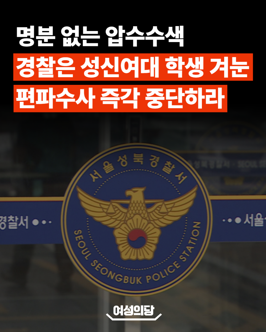 | 명분 없는 압수수색, 경찰은 성신여대 학생 겨눈 편파수사 즉각 중단하라 | |