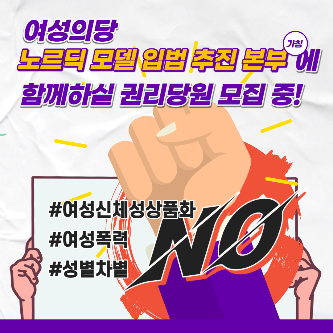노르딕 모델 입법 추진 본부(가칭)에 함께하실 권리당원 모집!
