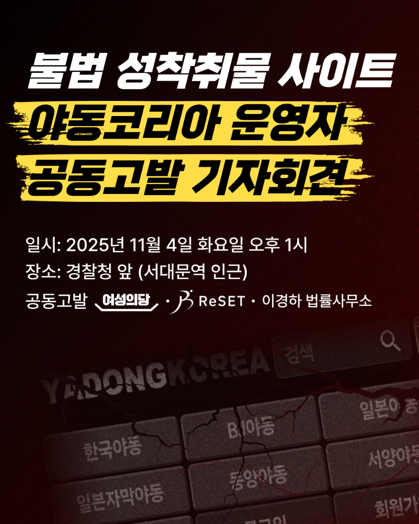 여성의당은 모든 불법 성착취물 사이트가 전면 폐쇄되고 디지털 성범죄의 뿌리가 완전히 뽑히는 날까지, 앞장서 싸움을 이어가겠습니다. 고발 기자회견에 많은 관심과 참석 부탁드립니다.