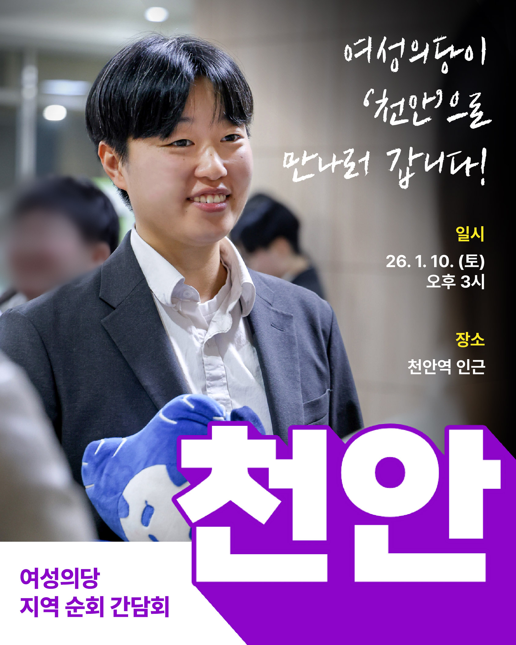 | [자역 순회] 2026년 새해를 맞이하는 여성의당의 첫 행사는 천안 지역 순회 간담회입니다! | |