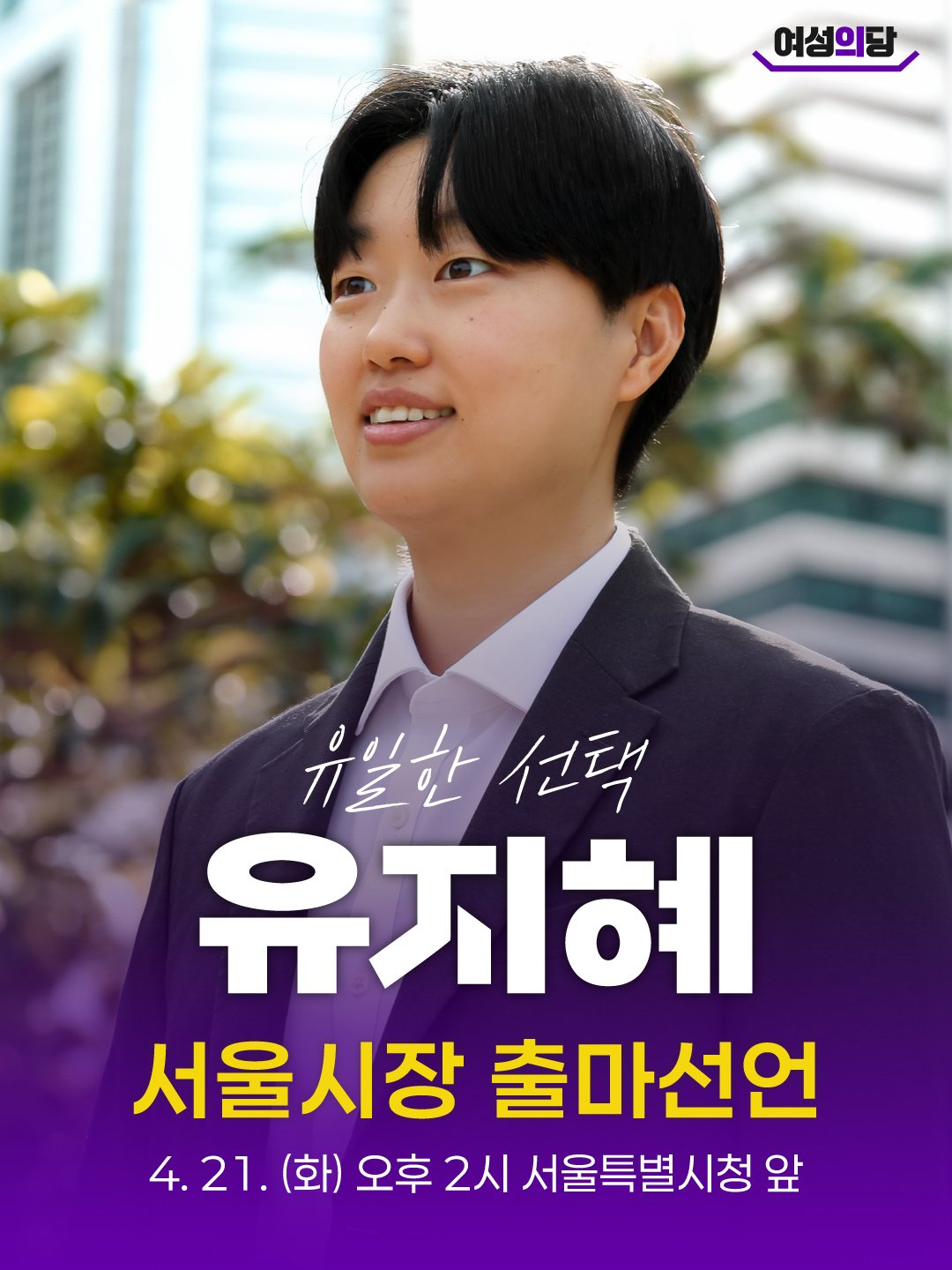 ![]() 당신의 유일한 선택, 유지혜가 나섭니다. 대한민국 여성 정치, 서울시장 선거에서 앞당기겠습니다. 그 변화의 중심에 유지혜가 서겠습니다. 이제는 서울을 바꿀 새로운 선택이 필요합니다. 룸살롱 없는 서울·여성폭력 없는 서울·권력형 성범죄 없는 서울! 4월 21일 화요일 오후 2시, 서울특별시청 앞 유지혜 출마예정자의 서울시장 출마 선언 기자회견에 함께해주십시오. |