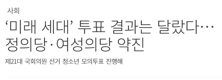 | [민중의소리]‘미래 세대’ 투표 결과는 달랐다…정의당·여성의당 약진 | |