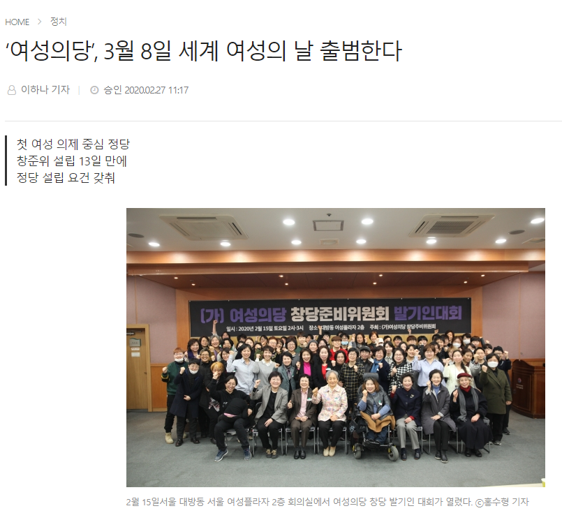 | [여성신문]'여성의당', 3월 8일 세계 여성의 날 출범한다 | |