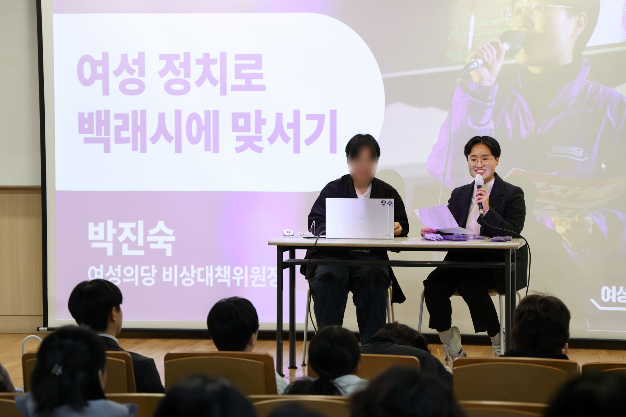 | 숙명여자대학교에서 박진숙 비상대책위원장의 강연이 진행되었습니다 | |