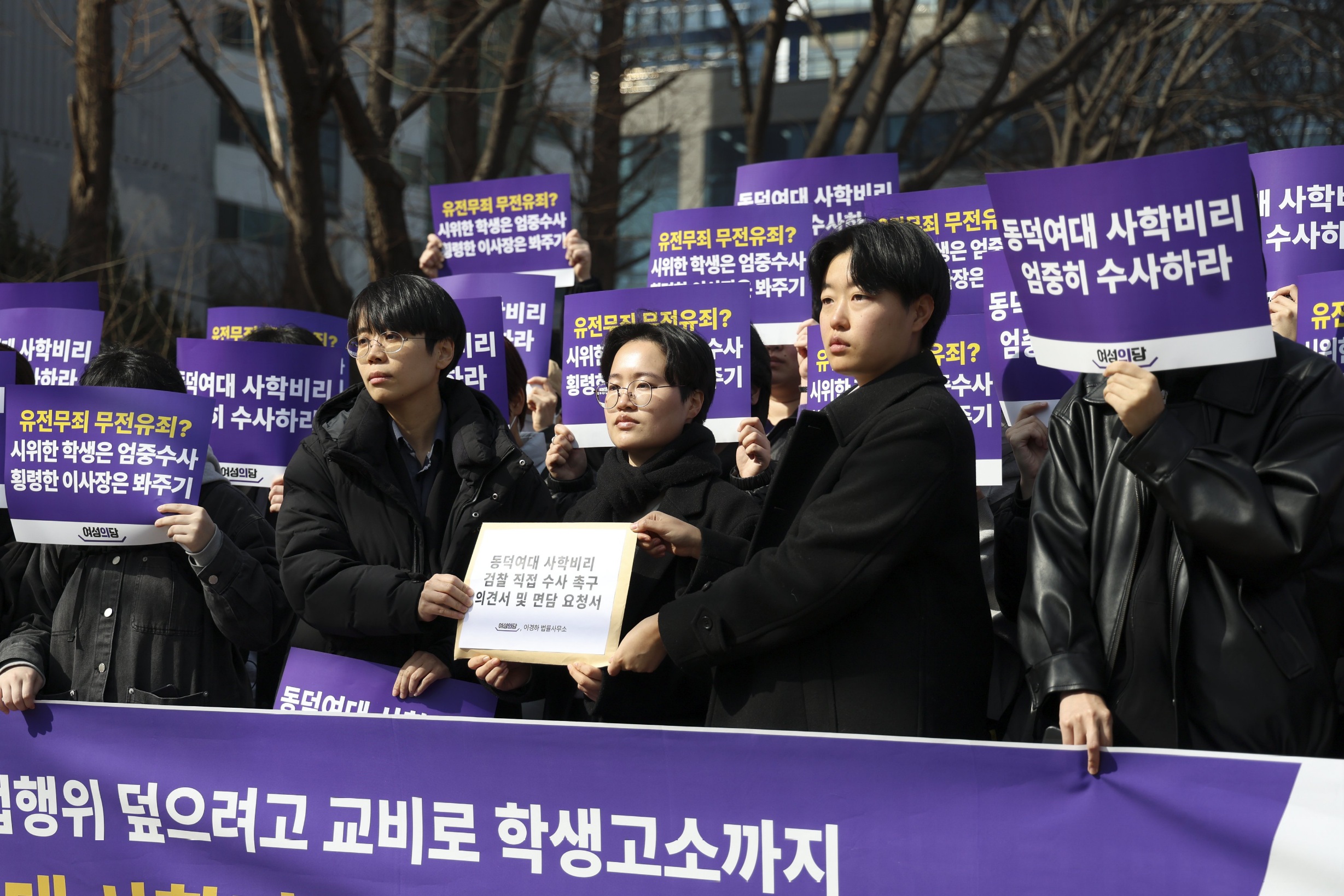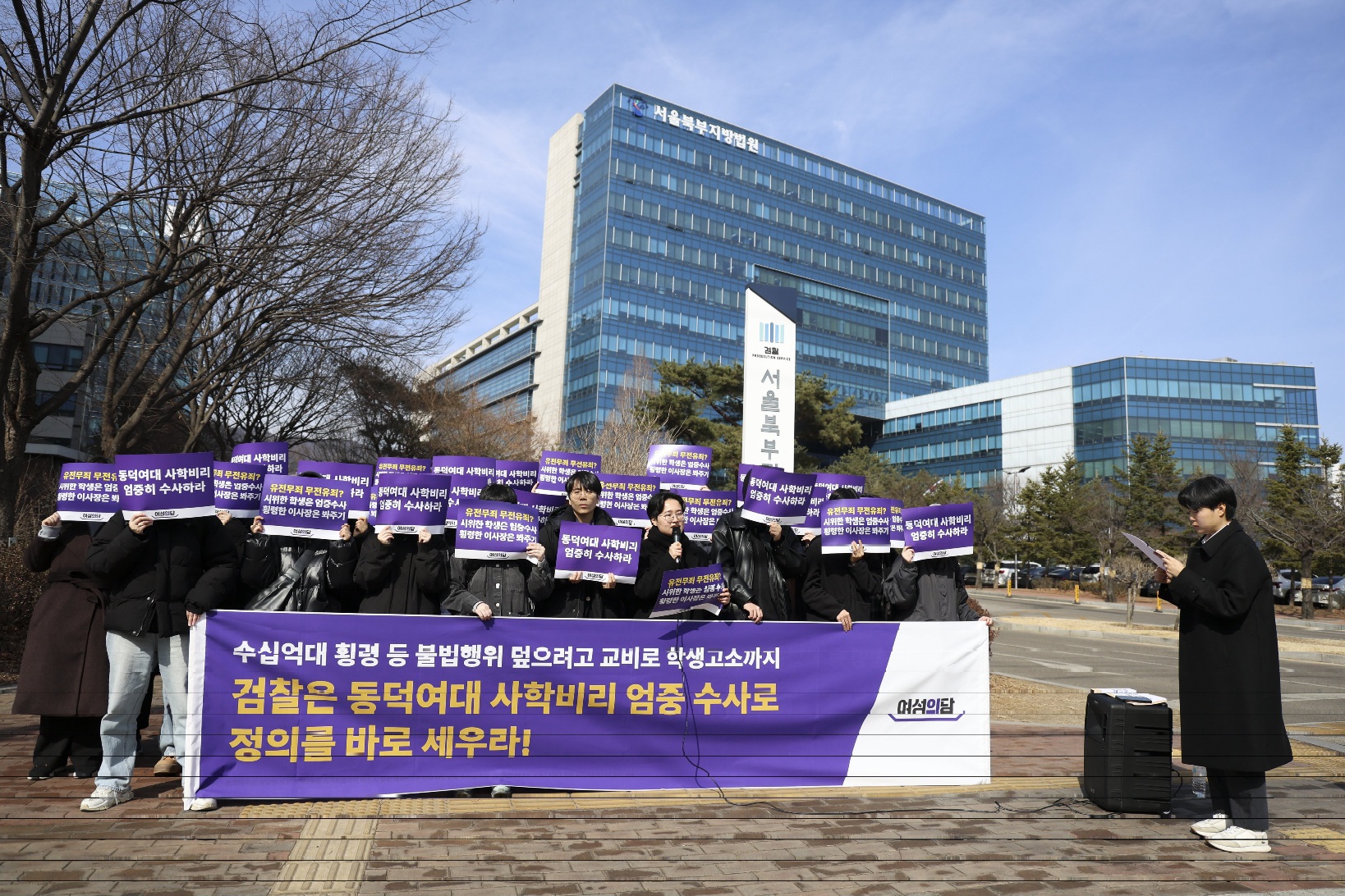오늘 여성의당과 이경하 법률사무소는 서울북부지검 앞에서 동덕여대 사학비리에 대한 검찰의 엄정한 직접 수사를 촉구했습니다.